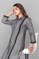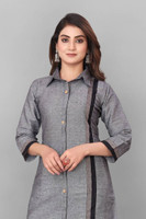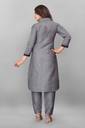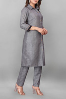 Sporting well-defined design details, the kurta of this set follows an A-line shape with a knee-length cut that flatters various body types. The collared neck with a button closure adds structure, creating a smart and comfortable fit. Furthermore, the three-quarter sleeves offer ease of movement and a balanced silhouette. Along with this, the matching pants complete this set, providing both comfort and coordination. Consequently, the thoughtful design allows this set to blend ease with gentle sophistication for daily dressing.