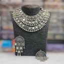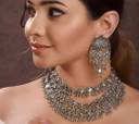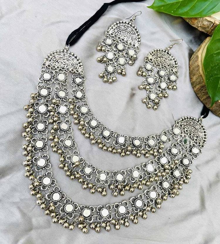 oxidized silver 3 layerd mirror work jewellery set