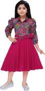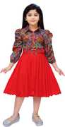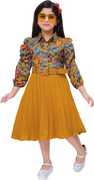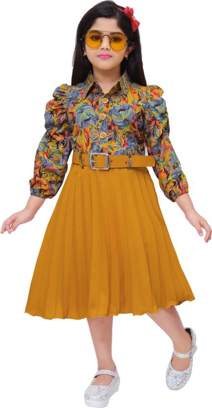 ALISHAFABRIC Girls Below Knee Festive/Wedding Dress (Yellow, 3/4 Sleeve)