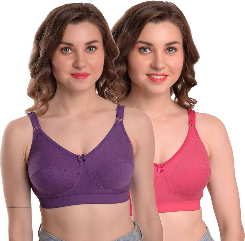 Pack of 2 Women T-Shirt Non Padded Bra (Purple, Pink)