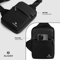 Featuring up to 300 gsm reversible material, this men's sling bag offers reliable support for everyday use. The material feels sturdy while maintaining a sleek appearance suitable for casual or travel settings. The front side includes a zippered pocket, providing a convenient space for storing items such as cards, coins or receipts that need to be accessed quickly.