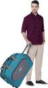 his travel bag, medium and sophisticated travel duffle trolley bag is handcrafted from high quality water resistant polyester . The bag offers a high storage capacity and 2 wheel trolley system makes the travel easier. Padded handles gives comfort mobility for the bag user. Multi-pocket spacious bag to fit in all essentials accompanied by adjustable and detachable shoulder strap for more comfort.Spacious Big Compatrmnet , both side pocket for easy access , front big pocket ,inside big pocket,Adjustable Shoulder Strap
