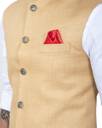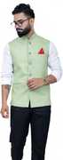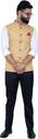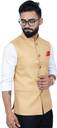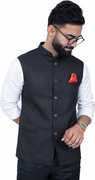 The *ALJAAMI Solid Men Waistcoat* is a sleek and stylish addition to any wardrobe, designed for both formal and semi-formal occasions. Made from premium fabric, this waistcoat offers a comfortable fit with a modern, tailored silhouette. The solid color provides a versatile look, making it easy to pair with a variety of shirts or suits. Featuring a classic button-down front and sharp cut, the *ALJAAMI Waistcoat* adds sophistication and refinement to your ensemble. Whether worn for business meetings, weddings, or special events, this waistcoat enhances your overall appearance with its timeless, elegant design. All our ethnic jackets have 3 inches loosening over the body measurement. So if your chest round measurement is 40 inches then you should go for a 40 ( L ) size. Select your Jacket size based on your chest dimension. Note: if one has a heavier abdomen compared to chest then he should select one size bigger Jacket. Jackets should have fitted look compared to a Kurta. ( Size guide :: Jacket size should be 6 inch over your jeans waist size (for eg : if you wear a 30 size jeans your waist coat size should be 36.