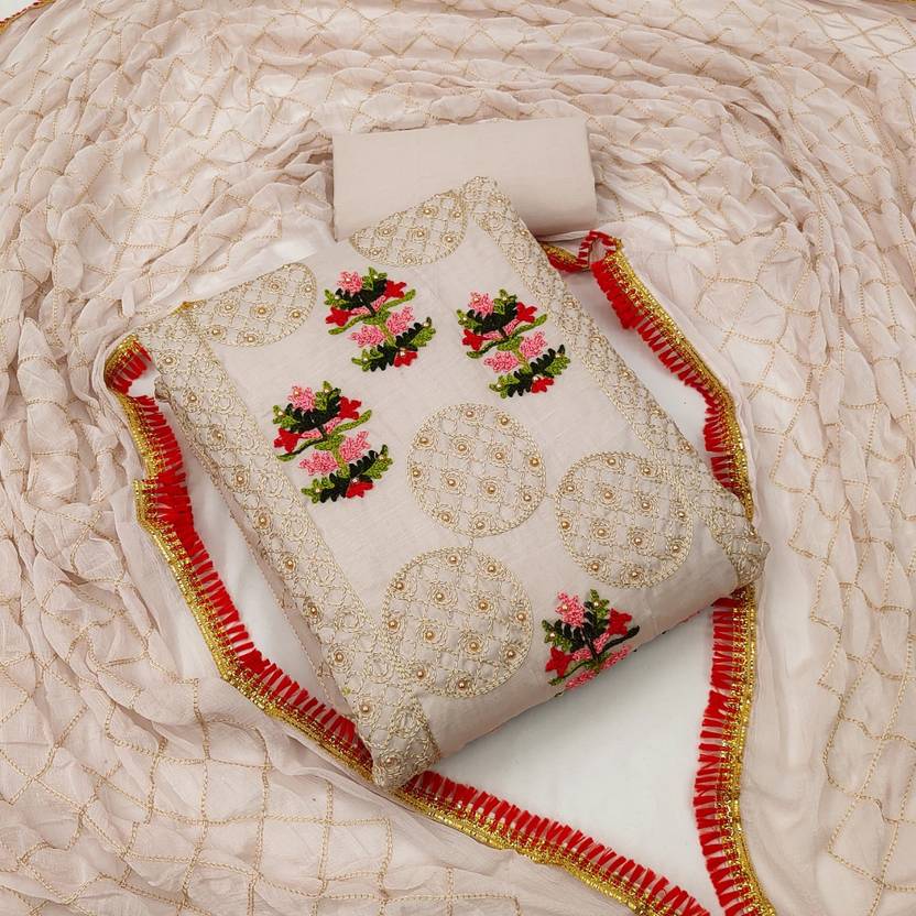 Unstitched Cotton Blend Salwar Suit Material Embroidered