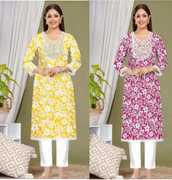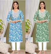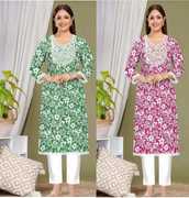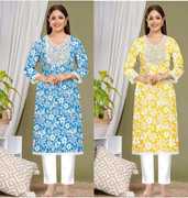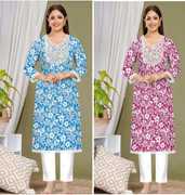 AlkalineRahu Women Floral Print A-line Kurta (Maroon, Blue)