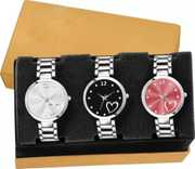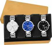 NEW STYLISH MULTI COLOR DIAL ANALOG SILVER METAL STRAP 3 COMBO WATCH FOR WOMEN