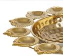 ALL.NATION.IMPEX Diya Shape Flower Decorative Urli Bowl for Home Handcrafted Bowl Iron Table Diya Set (Height: 10 inch)