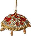 Chhatra or Deity umbrella with hand carved hinduism symbolic traditonal design and ghungroo bells. A number of deities are depicted with Chhatra, The Chhatra is cordoned amongst the symbols that approach universality within the numerous octavalent suites.Place this chhatra above the idol and add beauty to the look of the pooja and the elegance in the ambience during festive seasons and on special ocassions.Handle it with care and clean it with soft clean clothes.