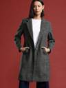 Charcoal self design longline overcoat, has notched lapel collar, long sleeves, 3 pockets, straight hemline, polyester lining