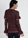 Burgundy self-design pullover, has a round neck, long sleeves, ribbed hemWith this timeless all about you sweater, you'll never go out of style. When you're going to the movies, pair this burgundy piece with your favourite pair of trim denims and a cute tote.