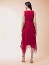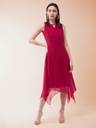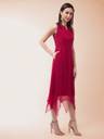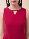 Pink solid regular fit cropped A-line sleeveless dress , has a round neck, a zip closure and pockets.