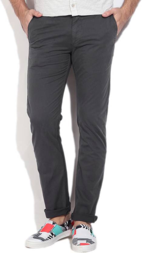 Jordi Men Slim Fit Grey Cotton Blend Trousers