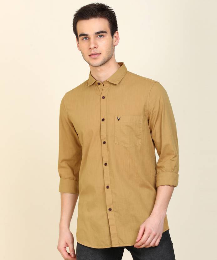 Allen Solly Men Solid Casual Khaki Shirt