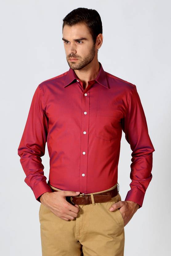 Merge style and comfort with this red shirt by Allen Solly. Made from breathable cotton, this full sleeve slim fit shirt is ideal for your Friday night parties. Team it with cream trousers and lace-ups to add more charm to your look.