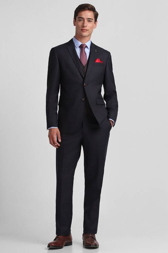 Tailored in a Slim Fit , this Navy Solid three piece suit from Allen Solly by Allen Solly will accentuate your dapper style.