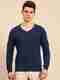Linen Club Men Solid V Neck Linen Blend Dark Blue T-Shirt