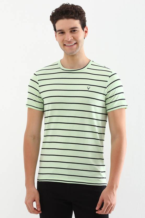 Allen Solly Striped Men Crew Neck Green T-Shirt