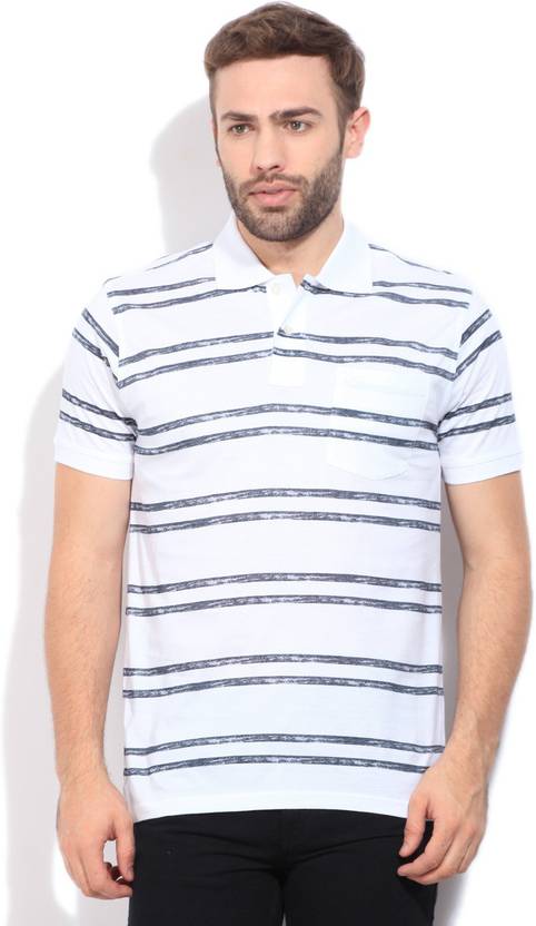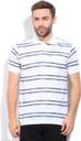 Men Striped Polo Neck Cotton Blend White, Grey T-Shirt