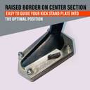 Created to help keep your bike upright even in soft dirt or on hot asphalt, Allextreme CNC-machined Side Stand Foot Enlarger expands the area of the kickstand's footprint. The raised border of the central section is designed to help guide your kickstand's base into the most optimal location.