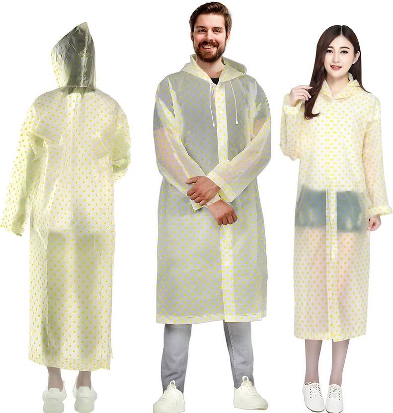 Fine workmanship and excellent fabrics, comfortable to wear. Suitable for rainy cycling, camping, hiking, commuting and traveling. Special transparent polka dot pattern of the raincoat, having an elegant appearance. Hooded design with waterproof and windproof functions, practical and convenient. Specially designed for Men and Men to wear on rainy days, easy to fold and unfold. Specification: Optional Color: Random Material: EVA Size: 145 cm x 70 cm Thickness: 0.12 mm Waterproof: Package List: 1 x Raincoat