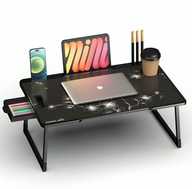 Alliance Multipurpose Foldable with Cup Holder, Study , Bed Wood Portable Laptop Table (Finish Color - Black-Flower, Pre Assembled)