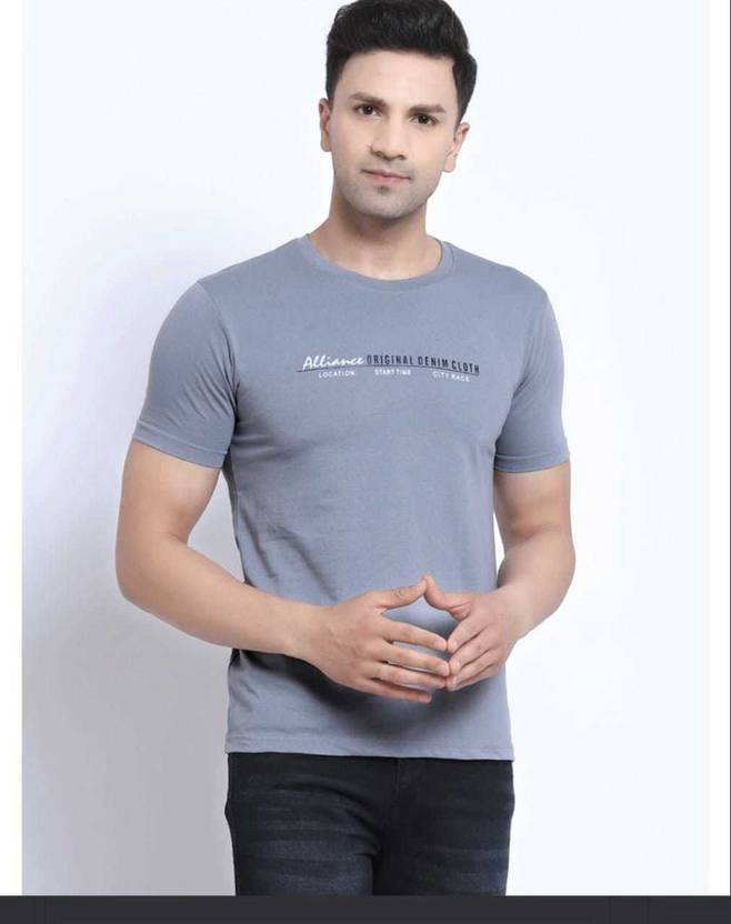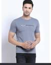 Men Printed Round Neck Cotton Blend Grey T-Shirt