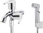 Alligator Jharna 2 in 1 Angle Cock Long Bib Tap Brass Disc Fitting for Bathroom/ Kitchen Toilet with Hand Shower/Faucet Set 1.5 Flexible Steel Tube, Hook (Set of 1) Health Faucet (Wall Mount Installation Type)