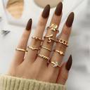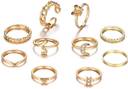 Gold Plated 10 Pcs Moon Heart Butterfly Chain Ring Set