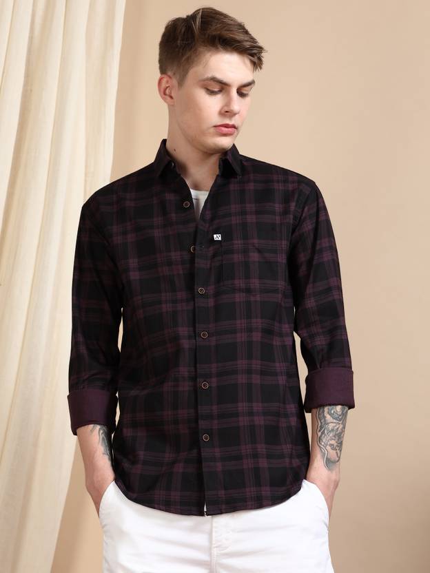 ALLWIN PAUL Men Checkered Casual Purple Shirt
