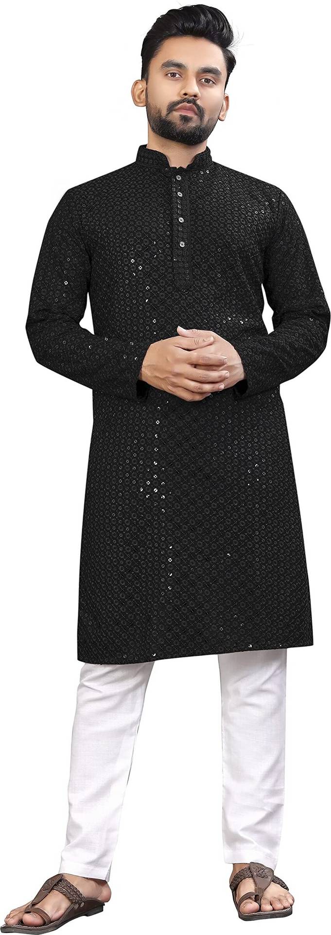 ALMORA Men Embellished Straight Kurta (Black)
