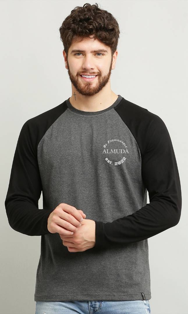 ALMUDA Printed, Solid Men Round Neck Grey, Black T-Shirt