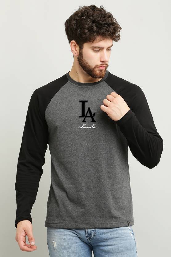 ALMUDA Printed, Solid Men Round Neck Grey, Black T-Shirt