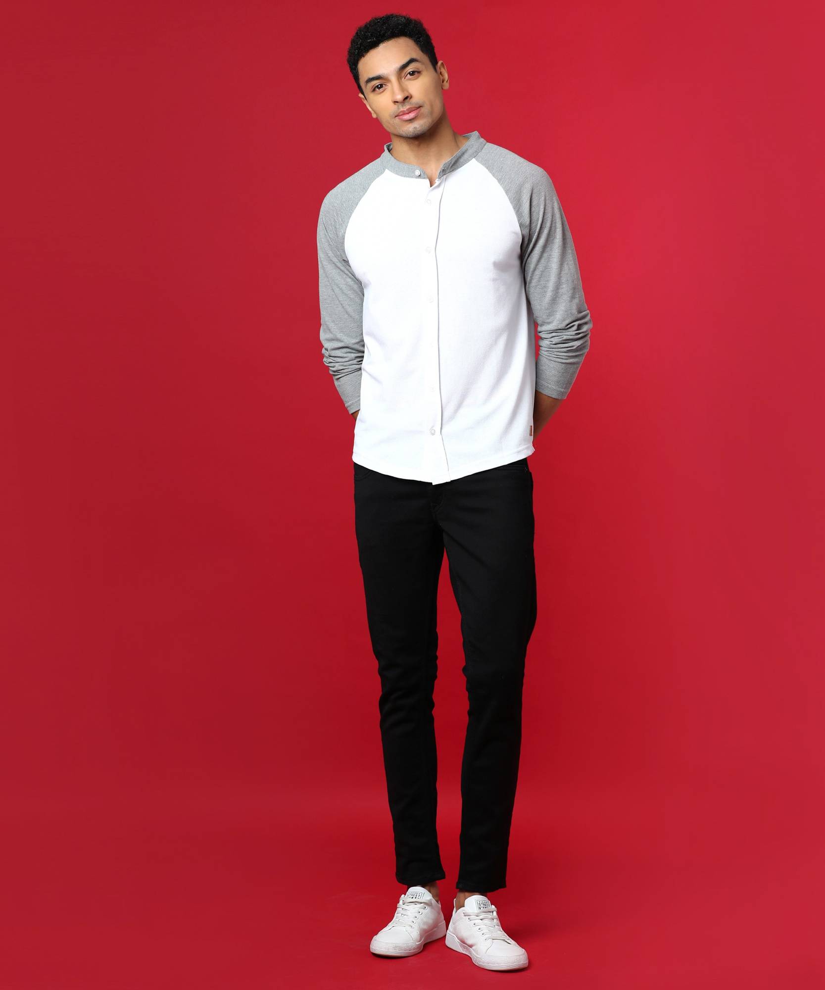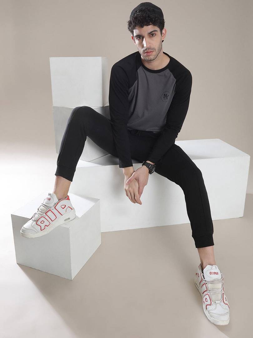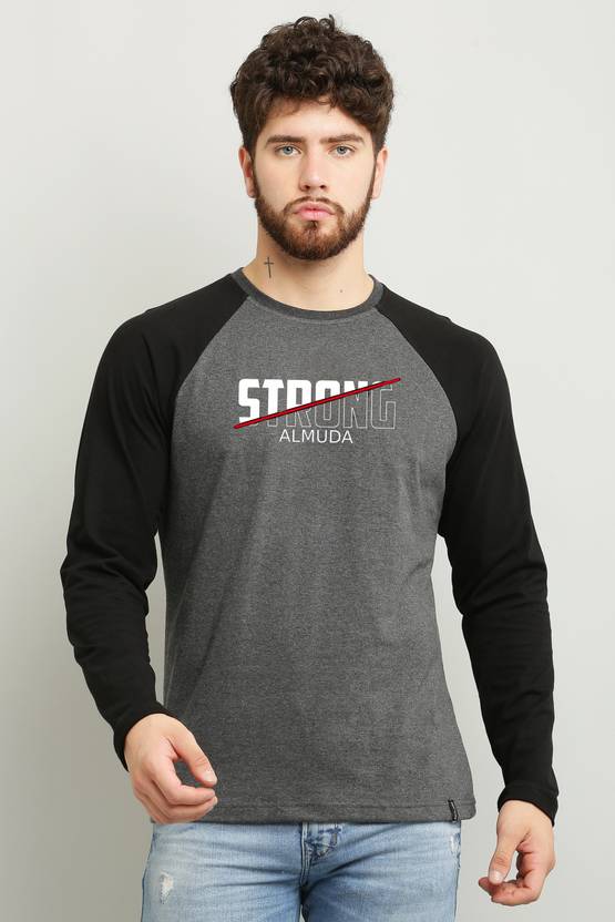 ALMUDA Printed, Solid Men Round Neck Grey, Black T-Shirt