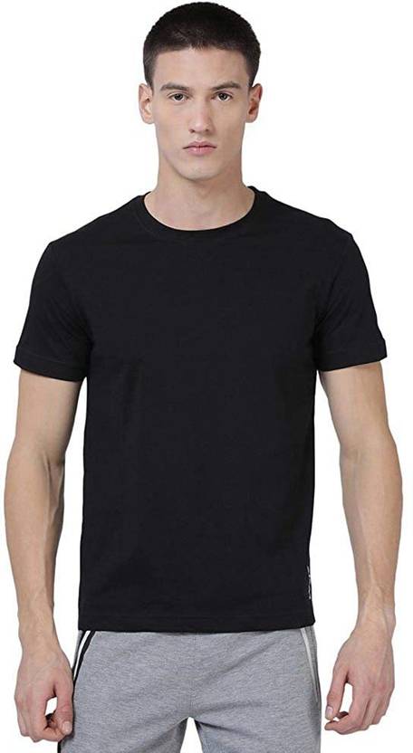 Men Solid Round Neck Cotton Blend Black T-Shirt