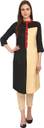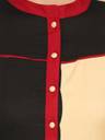 Colour block long kurta with contrast colour mandarin collar placket and three fourth sleeves