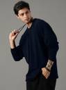 ALONE EAGLE Solid Men Round Neck Dark Blue T-Shirt