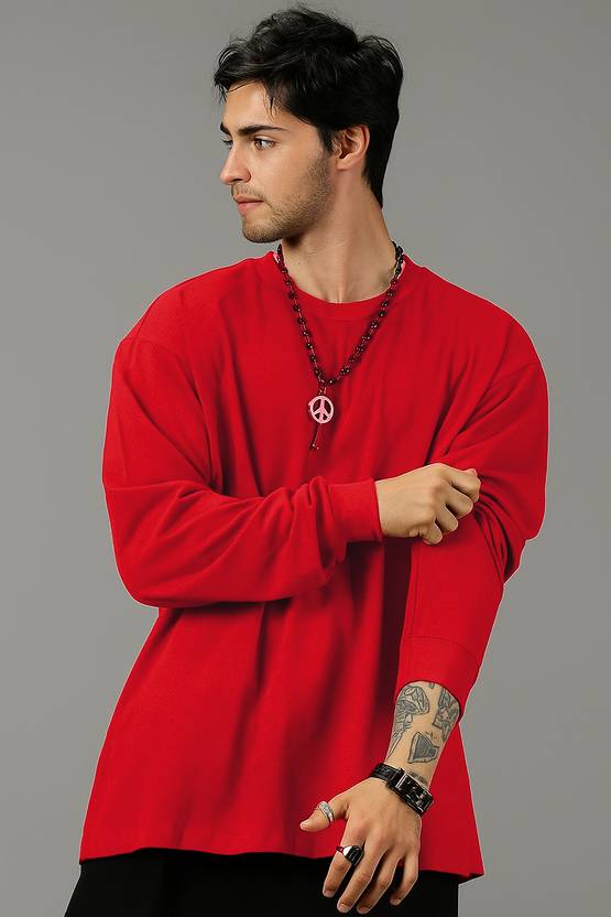 ALONE EAGLE Solid Men Round Neck Red T-Shirt