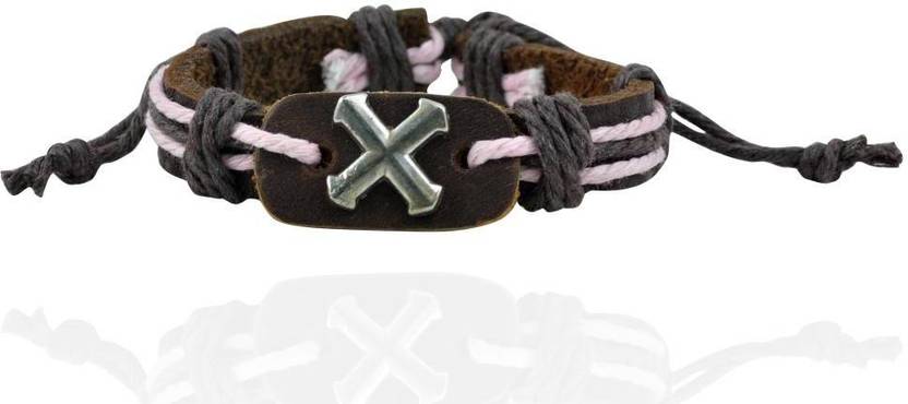 ALPHA MAN Silver Criss Cross Boys Wrist Band (Brown, Pink, Pack of 1)