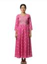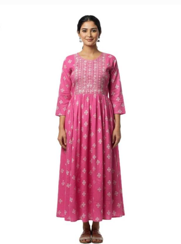 Women Floral Print Cotton Blend Anarkali Kurta (Pink)