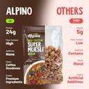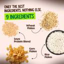 Key Features | - 24% High Protein Content: Each serving delivers 24g of protein from soya protein and multigrain, supporting muscle repair and satiety, Refreshing Cold Coffee Flavour: Infused with coffee powder and natural identical flavouring for an invigorating taste experience, 52% Multigrain Blend: Packed with wholesome Wheat flakes, Rice flakes, Corn flakes, and Rolled oats for sustained energy, High in Dietary Fibre: Contains 9g of dietary fibre per 100g, promoting healthy digestion and prolonged fullness, No Refined Sugar & Zero Added Salt: Sweetened naturally and free from refined sugars and unnecessary salt for a healthier choice, Nuts & Seeds Inclusions: Features a delightful mix of raisins and sunflower seeds for added texture, nutrients, and healthy fats, Zero Cholesterol & Trans Fat: A heart-healthy breakfast option contributing to your overall well-being, Versatile & Easy to Prepare: Enjoy soaked overnight, with milk, yoghurt, or as a crunchy snack