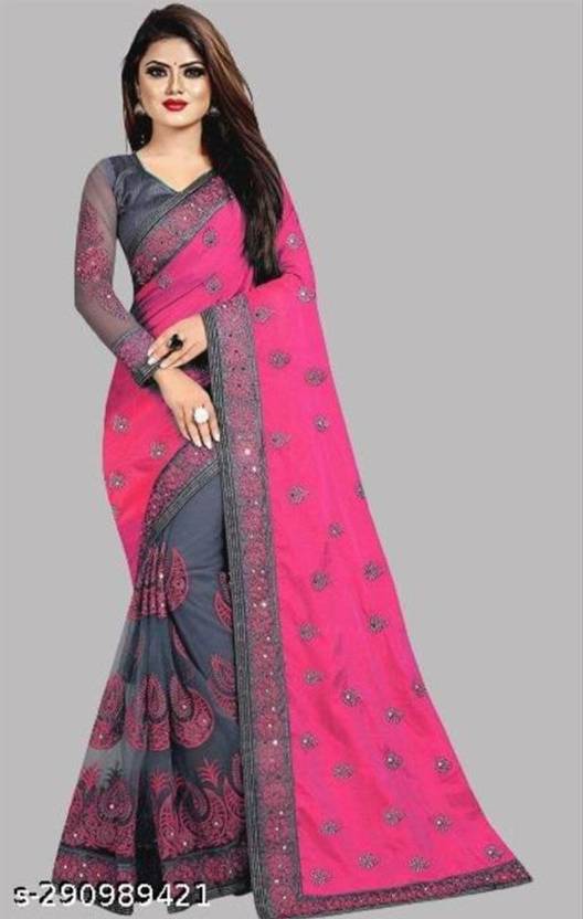 Embroidered Bollywood Art Silk Saree (Pink, Grey)