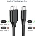 ALRITO Type C 0.3 m USB C to Micro B 3.0 Cable (5 Gbps), USB 3.1 External Hard Drive Cable (Compatible with USB C Port Laptops, Galaxy S5 Note 3, etc, External hard drive, SSD/hdd, Black, One Cable)