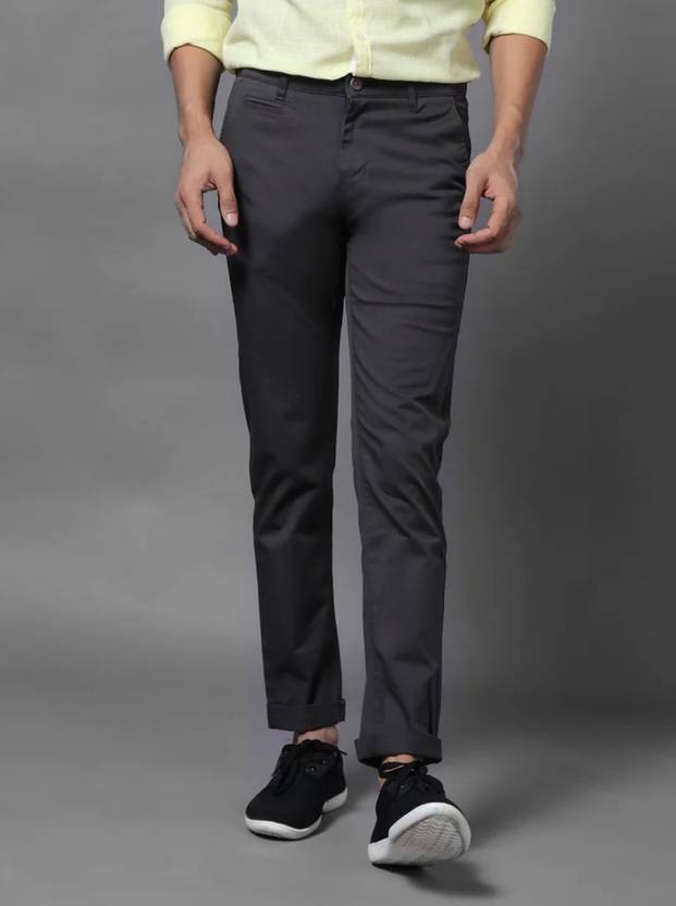 Men Slim Fit Grey Cotton Blend Trousers
