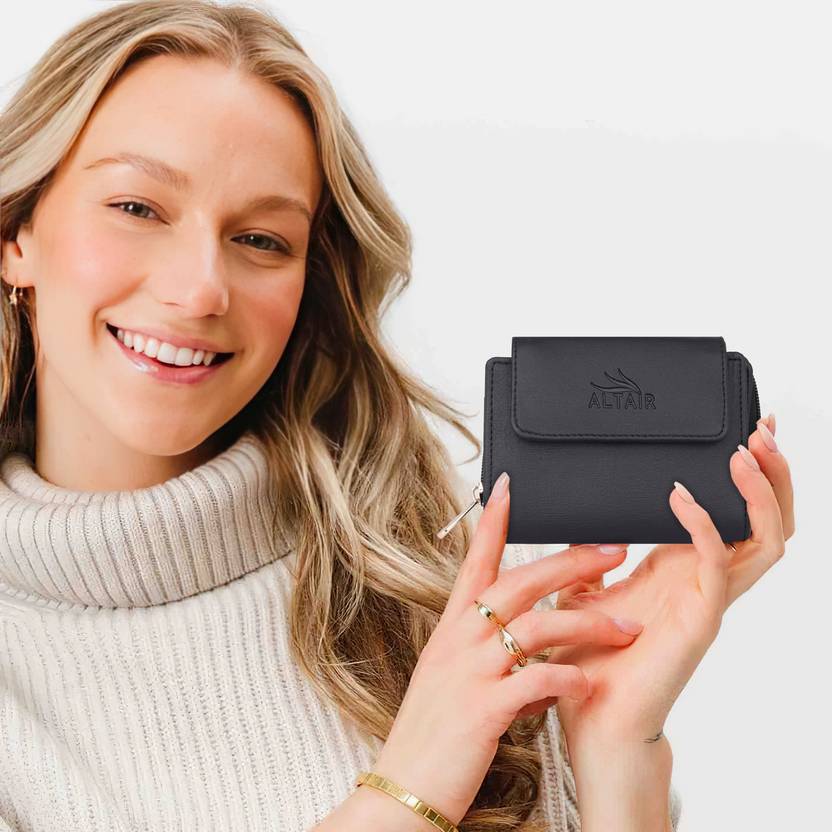 Introducing the Altair Women's Small Wallet, a stylish and functional accessory designed to simplify your everyday life. This compact wallet features an ID slot, three card holders, a cash compartment, and a convenient coin pocket, offering seamless organization for your essential items. Crafted with high-quality materials, the Altair Women's Small Wallet combines durability with an elegant design, making it a perfect companion for women on the go. Whether you're heading out for a casual outing or a special event, this chic and practical wallet is the ideal choice to keep your essentials within easy reach and elevate your style effortlessly.