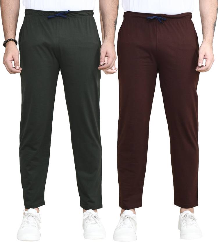 Pack of 2 Men Solid Grey, Brown Track Pants
