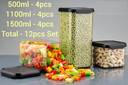 ALTOSA Plastic Grocery Container - 1500 ml, 1100 ml, 500 ml (Pack of 12, Black)