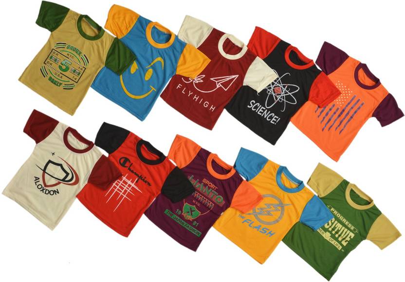 ALUXDON Baby Boys Graphic Print Pure Cotton Regular T Shirt (Multicolor, Pack of 10)