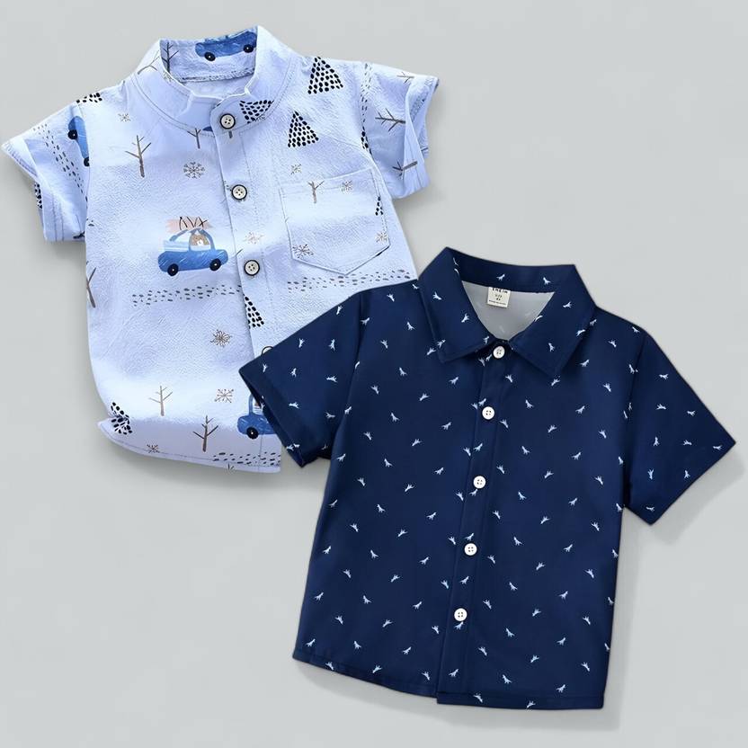 Baby Boys & Baby Girls Regular Fit Printed, Checkered Cut Away Collar Casual Shirt (Pack of 2)