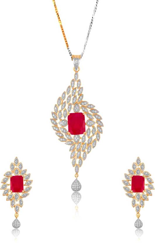 Brass, Silver, Copper Gold-plated, Rhodium Gold, Silver, Red Jewel Set (Pack of 1)