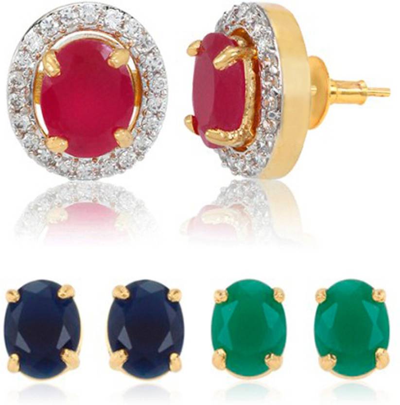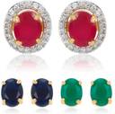 A stone changeable stud earrings from Alysa a must have in your jewellery box. These are studded with swiss cubic zirconia stones with three changeable stones to match with your dress. Plated with gold and rhodium for long lasting shine. Wear these earrings everyday or for office or for any special occasion with your ethnic or western wears.
